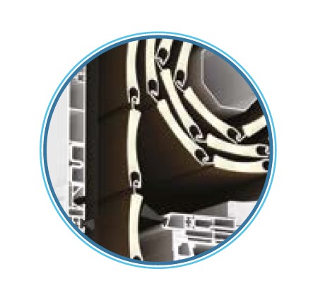 System opcjonalnie występuje w wersji z zaokrągloną płytą rewizyjną od czoła wewnątrz budynku, co znacznie poprawia jego walory estetyczne.