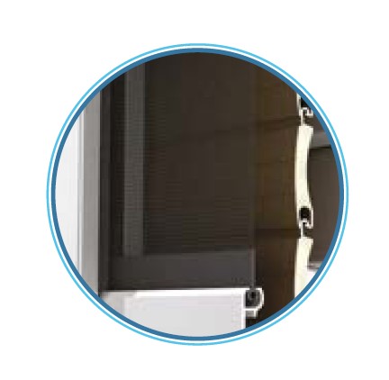 System Opoterm umożliwia montaż zintegrowanej moskitiery. W przeciwieństwie do skrzynek Exte Expert i Elite XT, siatka moskitiery znajduje się tutaj za pancerzem (patrząc od wewnątrz).