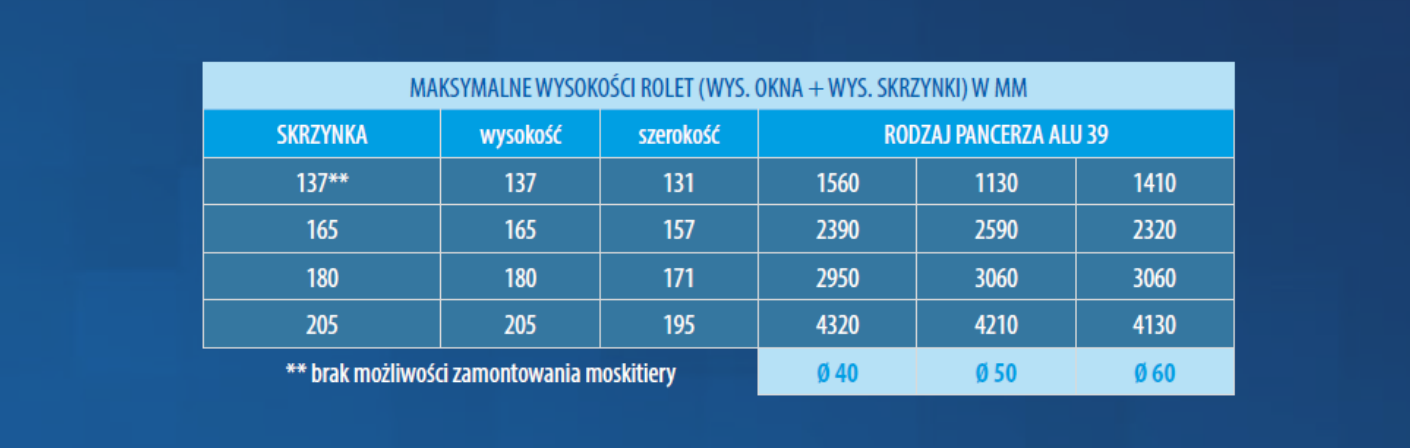 Możliwość wyboru skrzynki ze zintegrowaną moskitierą. Tylko w skrzynkach powyżej wymiaru 137mm.